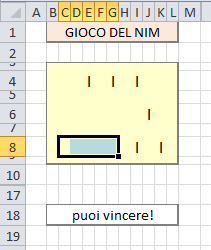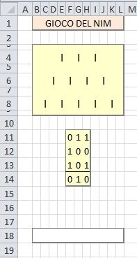 L'aspetto più interessante di questa versione "intelligente" è che, al contrario della vesione senza VBA, NON ho utilizzato nessun tipo di conversione in binario dei numeri rappresentanti i bastoncini presenti sul tavolo.