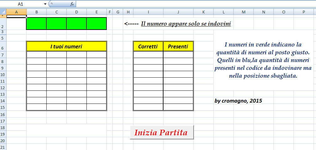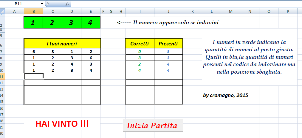 Scopo del gioco è indovinare una combinazione di n cifre fra 0 e 9 nel minor numero di tentativi possibile. Al crescere del numero delle cifre cresce la difficoltà del gioco (nel file allegato sono 4).